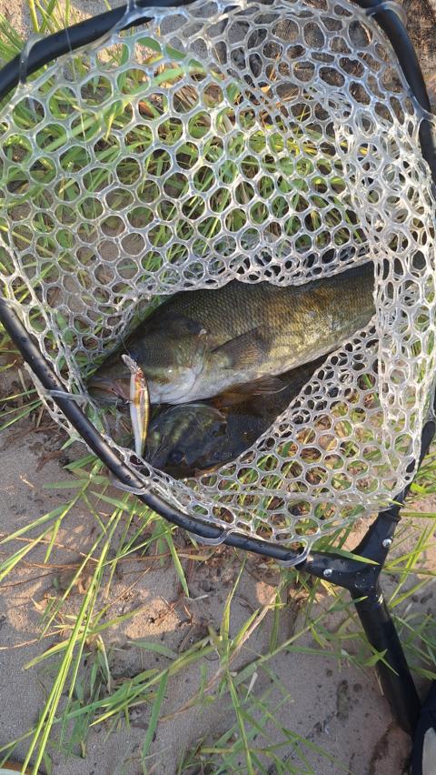 My first time catching 2 fish in 1 cast. The big one was 600 grams and my biggest smallmouth ever. I was very surprised to see that I caught 2 fish in one cast on a jearcbait. I have caught over 20 smallmouth bass in the berg river in the past 2 weeks, but alot of them are small ones. The jearcbait I use is called the sensation jeark minnow SD3 and caught all of the bass on it.