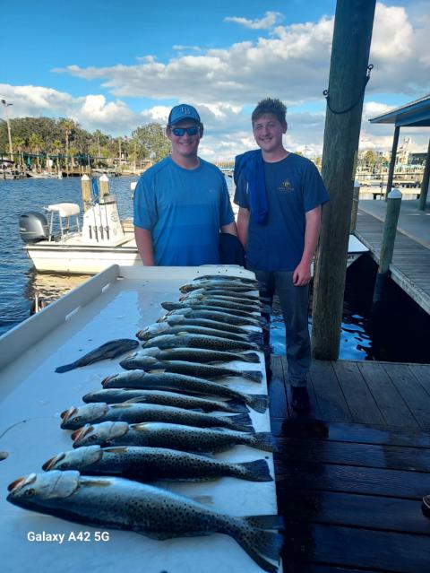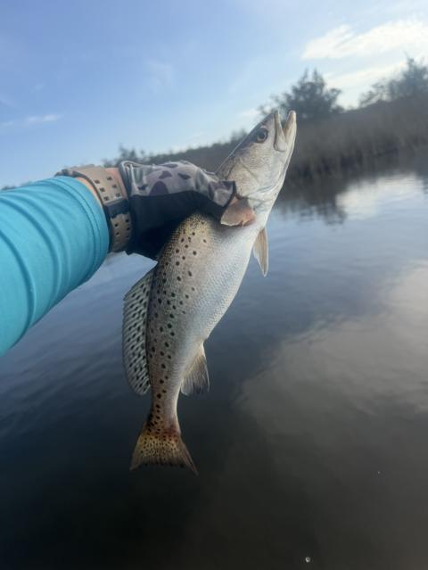 Yesterday on the water was slow, the current was barely moving. I landed a 19 inch Speckled Trout and some Spikes too. Mike landed a nice keeper too. 🎣Tight Lines🎣
