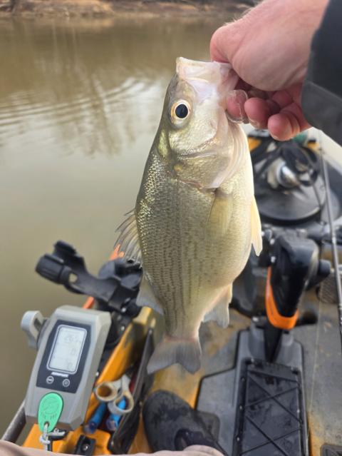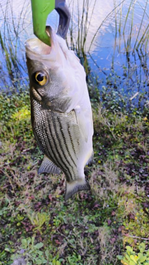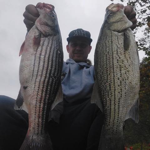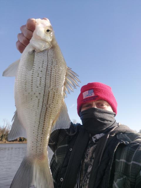 Just caught a Hybrid Stripped Bass!!!! They are so purdie😁😁🐟🐟🤣