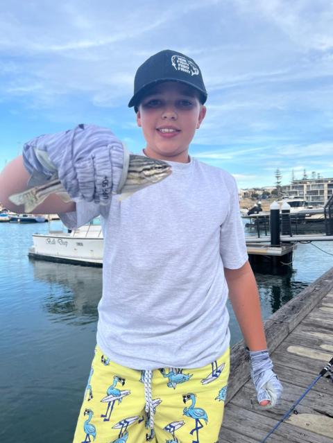 my son and I wet a line this morning caught 12 pink snapper pup's this one's the biggest, a couple of whiting all released