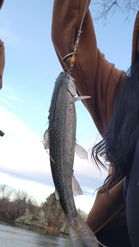 Caught my first rainbow trout at Riverstone Pond! 3rd cast, just a baby so we threw it back, but wow what a beauty!