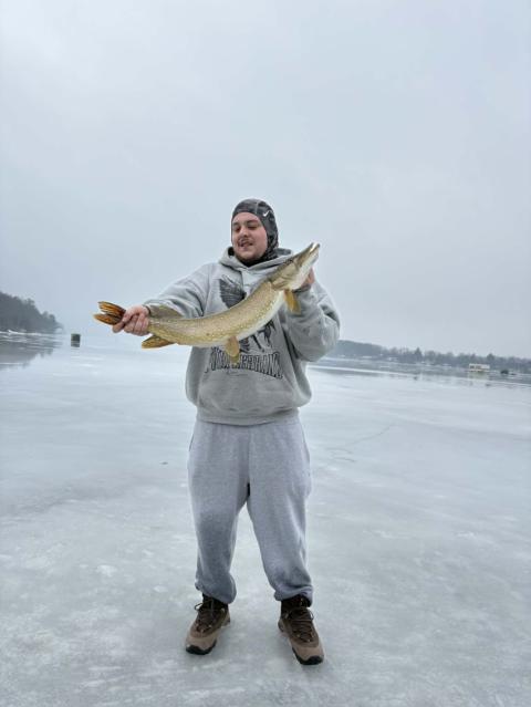 Was an amazing day today in my good friend Mikey’s hut or some of you know FishfinesserMike he’s got an amazing rental hut on Rice lake for very reasonable prices hit him up and book now my first 10 minutes there we set up I throw a worm on and im hammering the perch and outta no where I see all the perch run off so I look down my hole and sure enough this beast of a pike is just sitting there and swamped my worm!!!!!