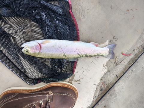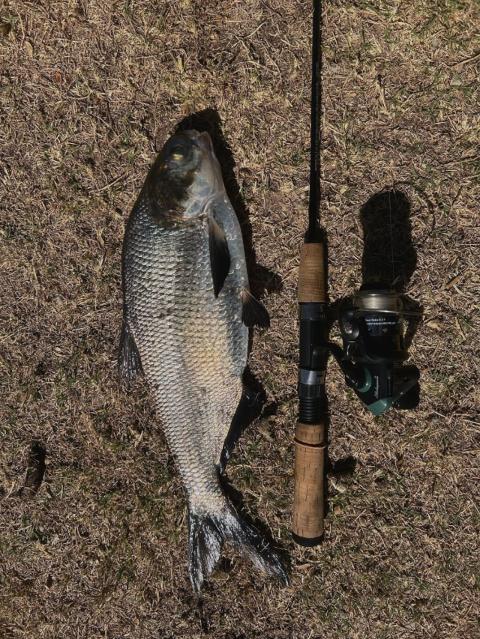 1/8oz Split shot (5in from hook), 4lb mono, #8 hook. Drag along bank.