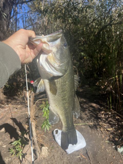I love when you get one on your 3rd cast of the morning! Threw it along the bank where the bass can ambush👍🏻👌🏻 Reeled in slow, felt a light tick, reeled up slack, and BAM!!! HOOKSET! It was a grass panda. When I removed all the weeds, the hook fell out haha! I set it hard too! Also hooked a nice lightning trout. Fought it for at least 4 minutes on my new set up, then it did a backflip and spit the hook😒 i guess I'd rather have a bass anyway lol