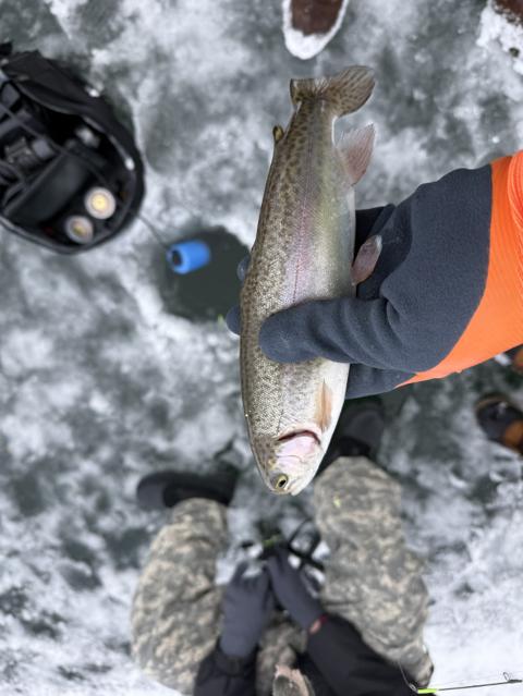 First time ice fishing and we limited out on Rainbow Trout!