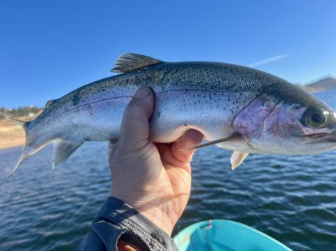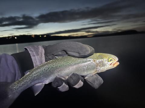 What an amazing sunrise this morning!!! love the cold brisk days like this. Had a great couple hours on the water very difficult to bring anything in deep, but the little rainbows and cut bows were hitting on top.