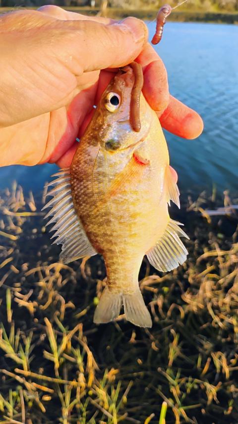 Small Redear......hey, no skunk day😂 Fishing at Crystal Lake!