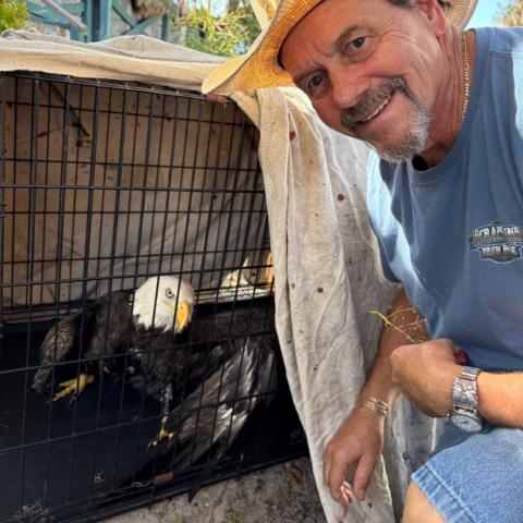 fishing this morning, and I ended up rescuing a bald eagle 🦅 now the eagle is at Raptor Center Of TampaBay.