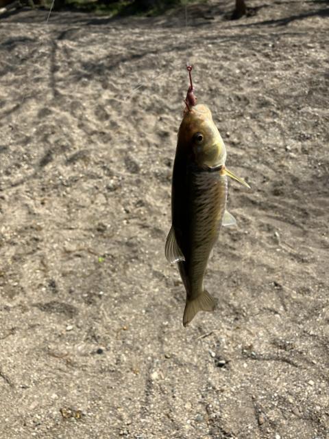 A two for one special a baby catty and a striped shiner at the local river in shelbyville indiana