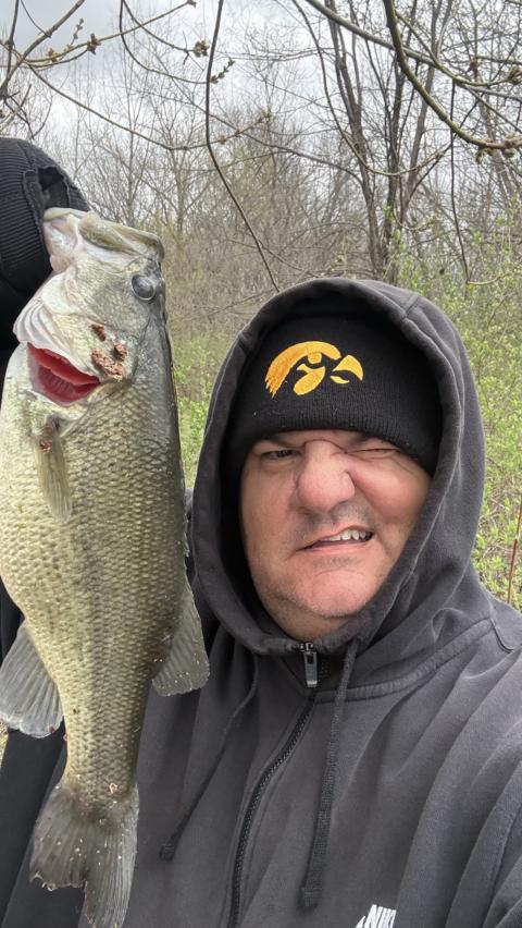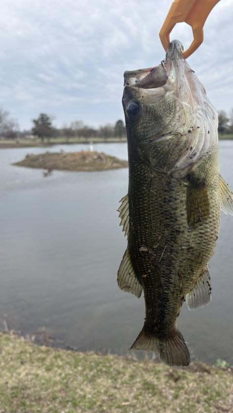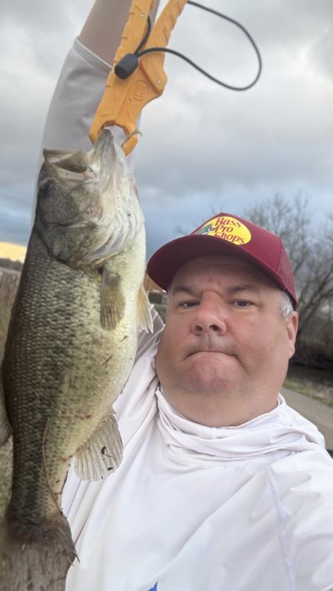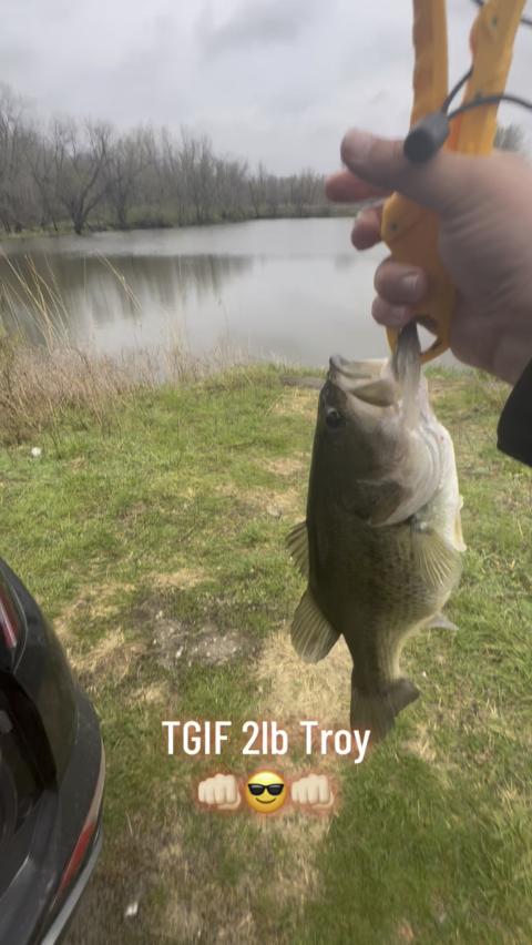 Big-one’s today only…white grub twisty tail bouncing along ponds edge, HAMMER! (Some random guys drove by and snapped pics for me-good to have witnesses)🎣