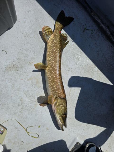 My grandson TJ's fish! Barely fit in the net! His first Pike