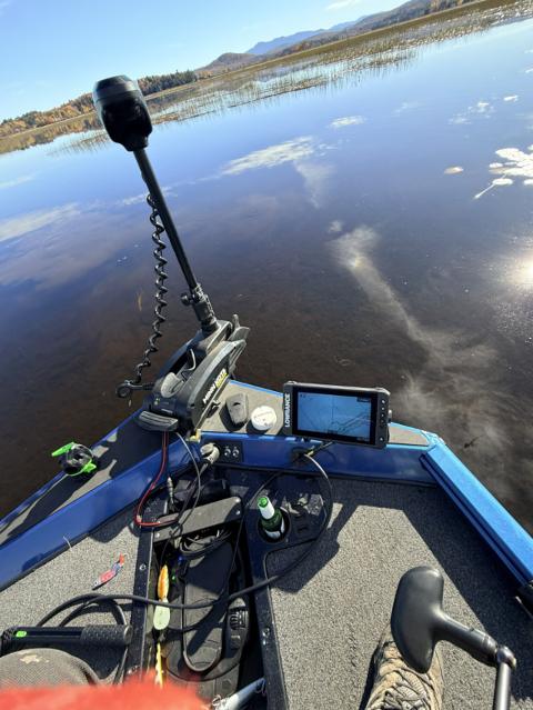 Tupper Lake on 4’ shallow water from Boat using spinner red and white #4