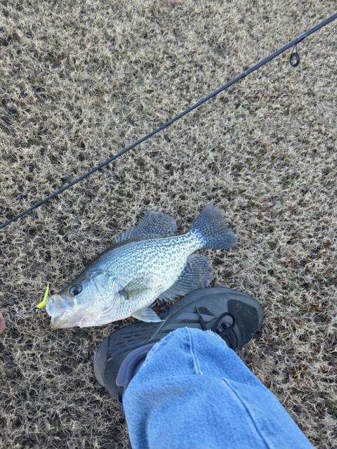 My daughter (8) caught 2 large crappie. Using yellow beetle spin