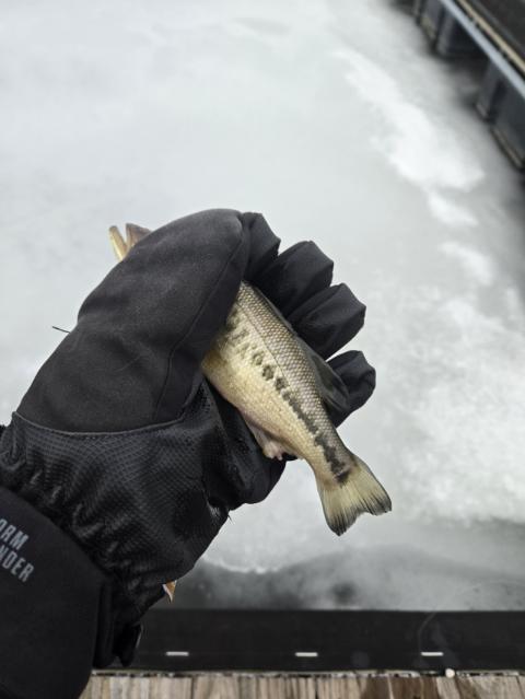 Great day to fish. First crappie of the new year. Checked ice thickness. Not thick enough for me to be on it. But I was able to get a fish out of it.