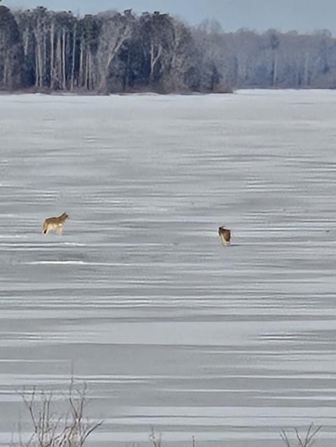 Cold morning, found some open water. Not a bite. No otter this time , did get to see coyotes on the ice.