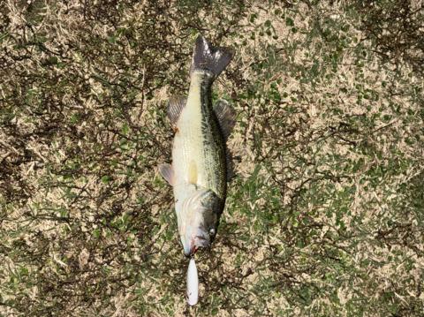 tried a new spot today too much wind but I still got a little one though about a pound probably 12 to 14 in