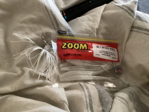 A couple days ago I got a chatter bait and a super salt plus salty, super fluke, white pearl and this is the best bait that catches bass where I got this is from Bass Pro shop so if you want to just go to Bass Pro shop