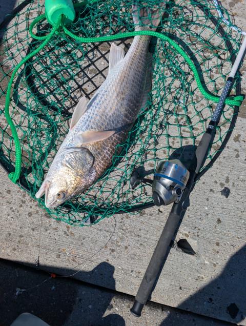 28" red drum at Caldwell Pier in Port Aransas TX, using cut mullet and 6/0 circle hook.