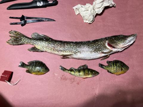 My buddy got this nice pike and we caught a bunch of perch