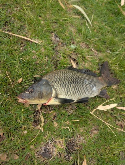 2 km downriver headed towards Waikerie lock 2 blanchtown, essentially berley up virgin water or hard to access structure.. my man CLUDOEWS brang this back in measured larger then then the brag measure" custom brag mat spoiler on the liquid vision mobile, 1m15cm + 15kg+ hybrid common/koi known as grass carp more slender strong dorsal and pectorals no whiskers they can pass as Barra in the clean water haha 🎣💪.. Approx 2km down from lock2 blanchtown Riverland, in deep holes shallow water marsh sandy/clay islands about 2am via kayak. Decent fish.. 15kg 115cm grass carp .. or common/koi hybrid