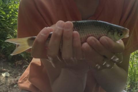 A nice but very slippery roach. The only catch of the day.