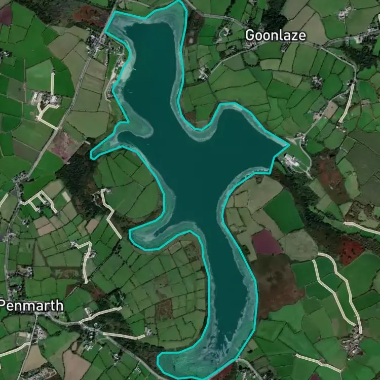 Stithians Reservoir is located in 50.181497, -5.203660.
