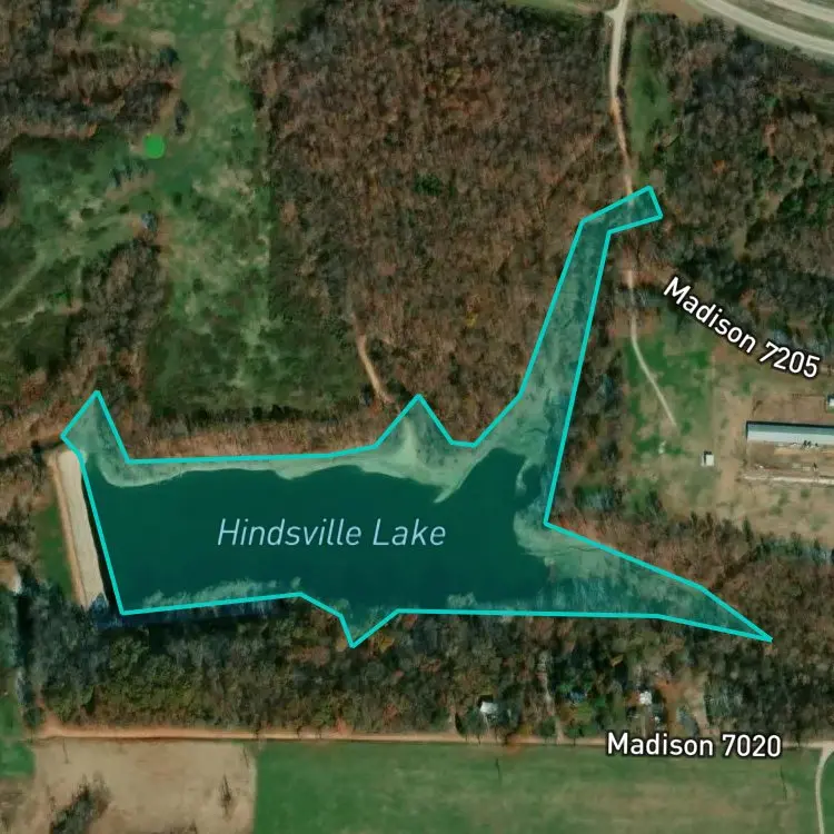 Download FishAngler to find the best places to fish at Hindsville Lake.