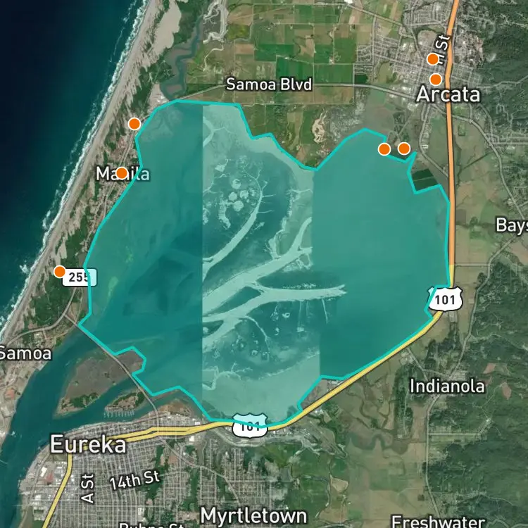 Download FishAngler to find the best places to fish at Arcata Bay.