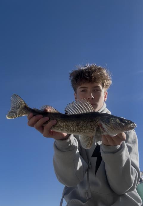 Good 2 days with my buddy Ethan we caught about 8 rainbows Sunday and 13 walleye and 2 bass Saturday he caught the biggest fish that was a 3.4 pound largy