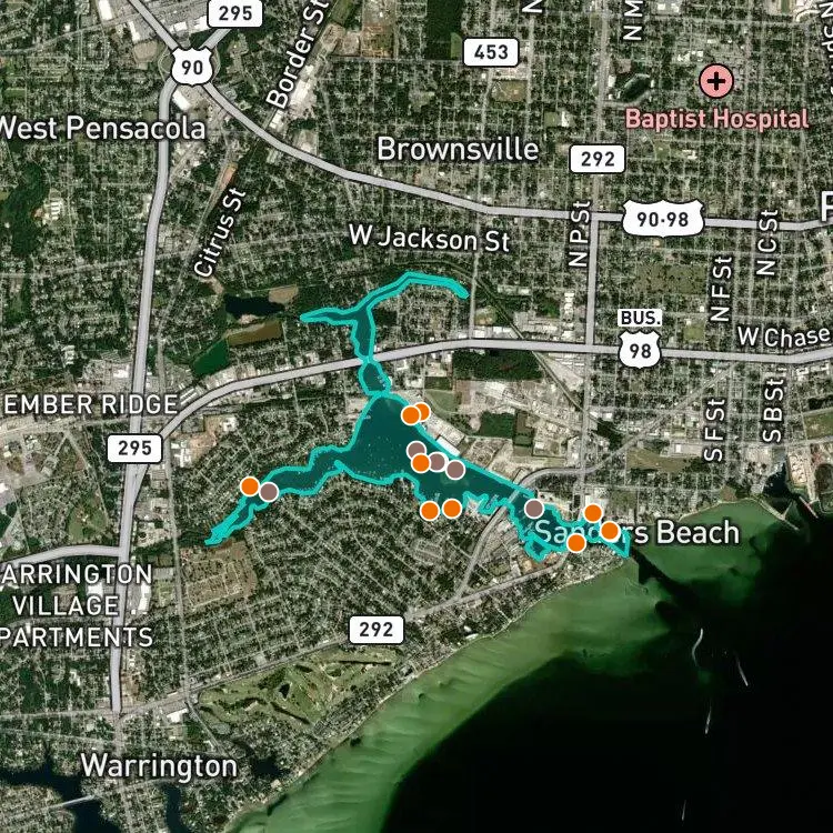 Download FishAngler to find the best places to fish at Bayou Chico.