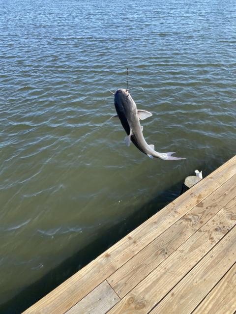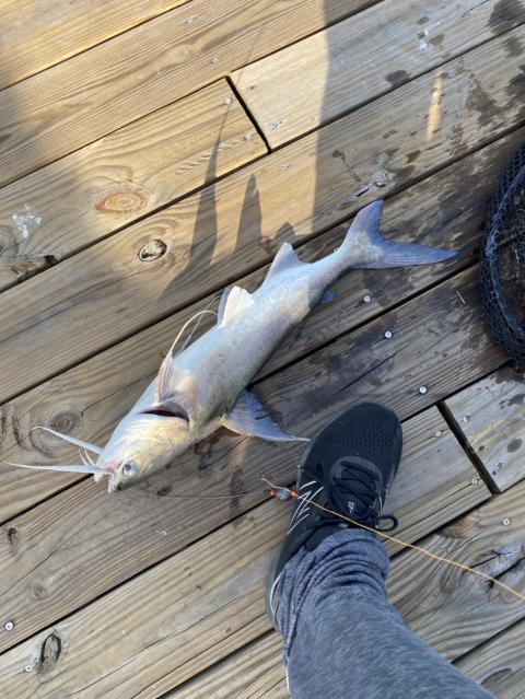 Good fighting Red off the dock on live menhaden.