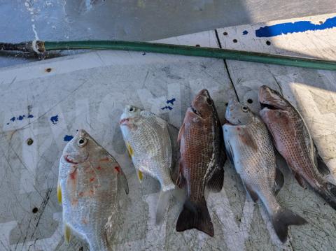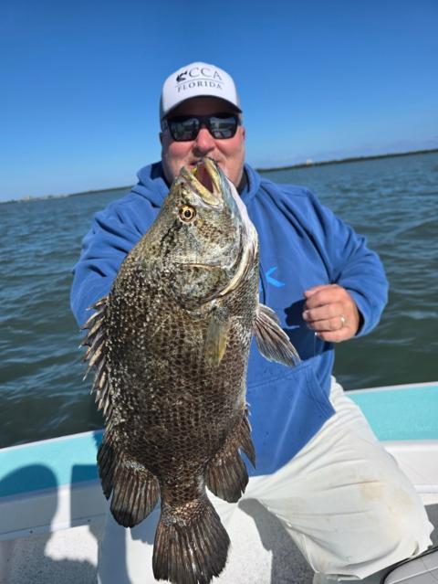 Went after the sheepys on a chilly day hoping the cold weather had them fired up! Caught a bakers dozen and the bonus while running buoys was a few slabs laid up sunning themselves. Went 2 for 2 and released one took the other home for dinner #tripletail #sheepshead #dinnerwasdelicious