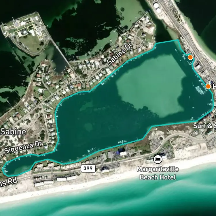 Download FishAngler to find the best places to fish at Little Sabine Bay.