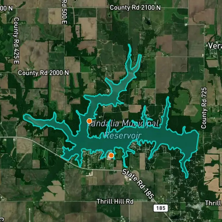 Download FishAngler to find the best places to fish at Vandalia Municipal Reservoir.