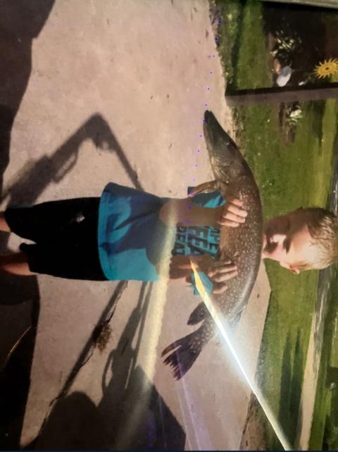 Younger me with a pike i caught@