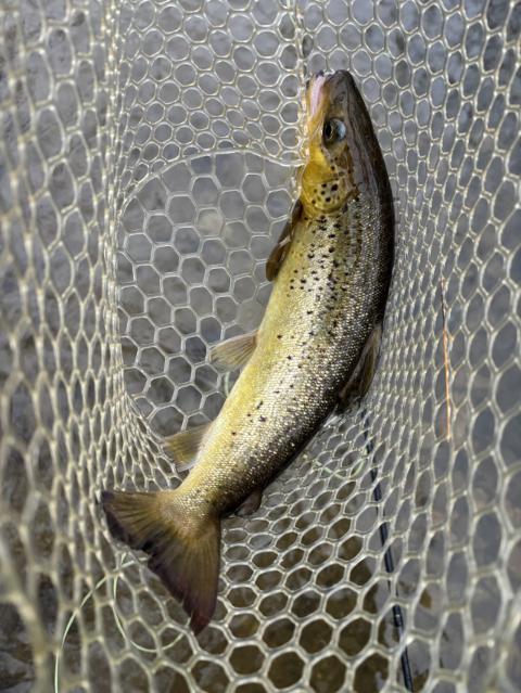 Two monster browns this morning. 😮. For those who didn’t know how to verify brown trout vs. salmon for sure, the last picture shows the vomerine teeth in a zig-zag row on the roof of the mouth, guaranteeing it’s a brown.