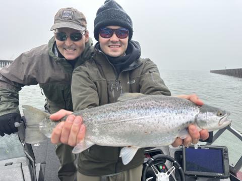 Solid day fishing with my son today for brown trout and steelhead around Milwaukee harbor. Solid action all day.