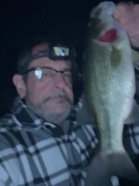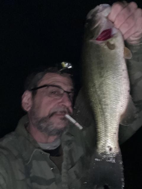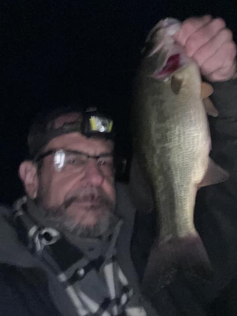 Had hung up my fishing rods but the warm night got me out fishing . Ended up getting 3 bass on a sleeper gill. This one was 19” and 3 1/2 lbs