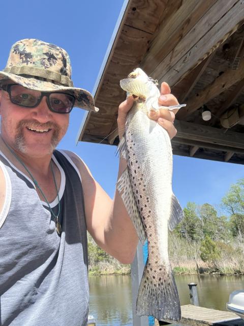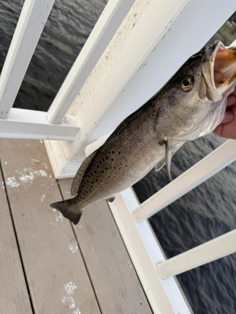 Two 14-16 inch spotted/speckled sea trout off the dock at Marston Pavilion