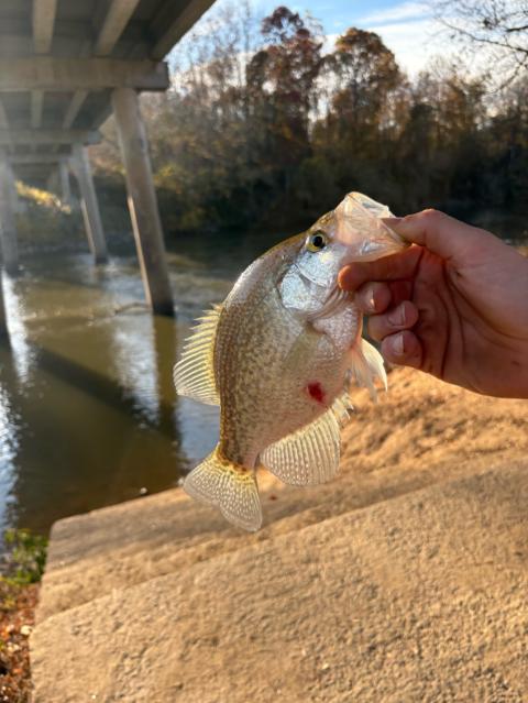Went catfishing today but didn’t catch any cats but we caught about 15 white bass and one crappie. I was surprised to see that white bass are still in the Yadkin river.