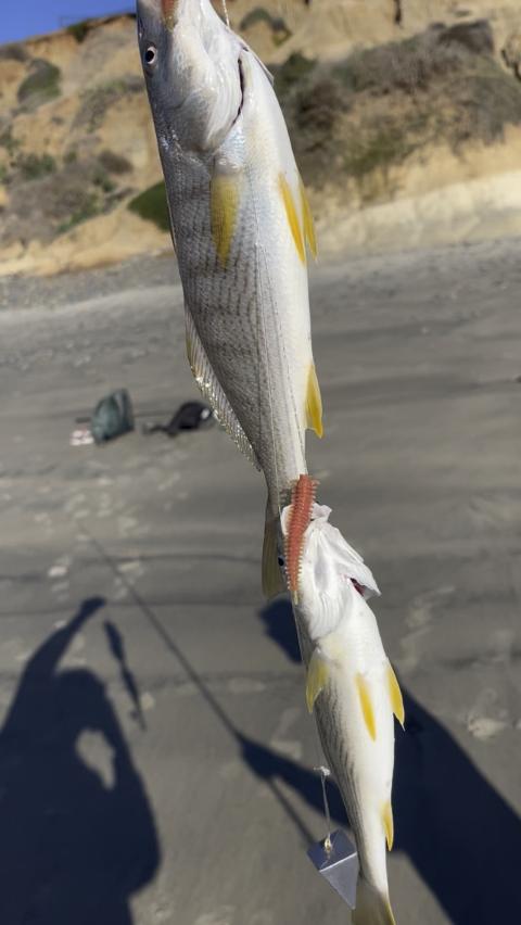 Chasing the birds led to some double-up croaker action 🫨