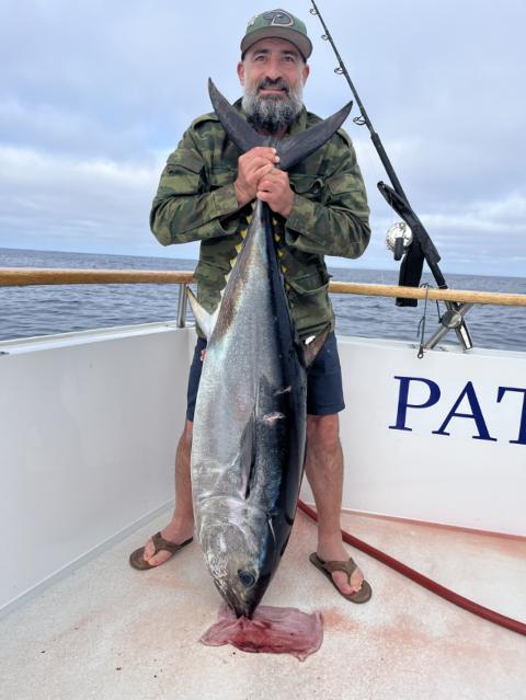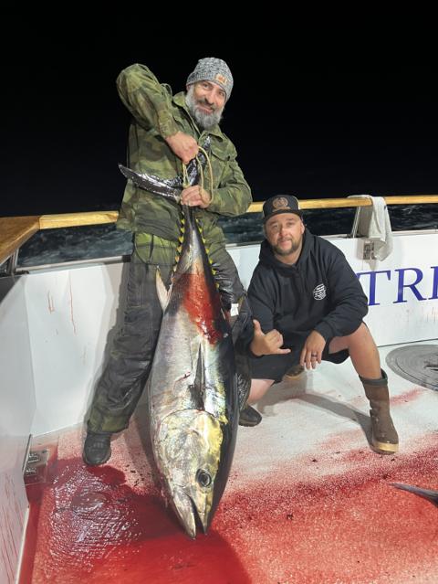 Took my buddy Josh out on his first BFT trip. We had to wait in departure as the boat stayed out later on the trip before, trying to get the Anglers on more tuna. Can't hate on that. We walked around the landings to kill time, in fisherman's landing, I saw a 420g HD West Coast Jiggerz in Silver and Black. I told Josh that the science says color doesn't matter when you fish deep and at night, color attracts the angler, but I admitted that jig was attracting me. LMAO. I told Josh, I have plenty of jigs, let's just head back. Boat arrived roughly at 10am. 7 BFT for 27 Anglers. Tough trip. Guys coming off said strong current and no one under 400g were getting bit because you scoped out fast. I ran to Fisherman's landing to grab that sexy 420g Black and Silver HD jig. Glad I did. We arrived in the area around 930pm. Everyone was getting jiggy with it (Na, Na, Na, Na, Na, Na, Na). Not until about 1030pm then the bites came. Each drift there was about 4 hook ups. 40 to 80 range bluefin. I hooked up and brought it my tuna in about 5 to 6 minutes. On my second hook up, I called for Josh, passed him the rod and he brought in his first tuna. I didn't record much of his fight because I was trying to hook and pass to another friend Hector. But I did get some footage of Josh eating that heart. Next day we fished for Rock fish and caught some reds, white and Salmon grouper. 2nd night was shorter as we had to head back in. Captain Steve asked us to stay a little later as well to try and get more fish aboard. We ended the trip with 19 bluefin for 26 Anglers. https://youtu.be/jaGoRJOngSc?si=uebAyrv-EvZwFVwv