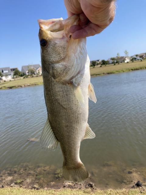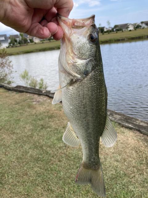 Caught on a Yamamoto 5” Kut worm Green Pumpkin/ med spinning combo 10lb test / 1/16th oz bullet wt & #2 ewg Texas rigged