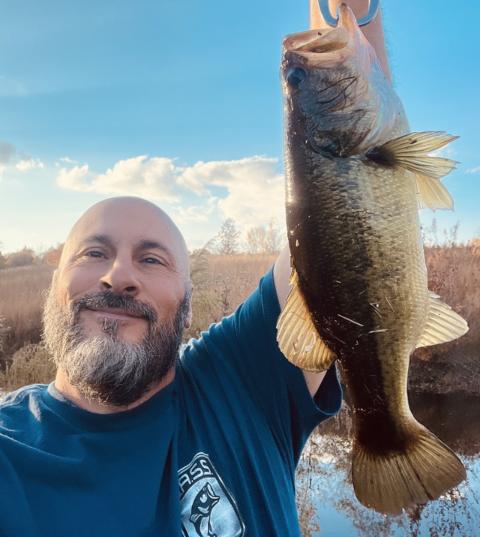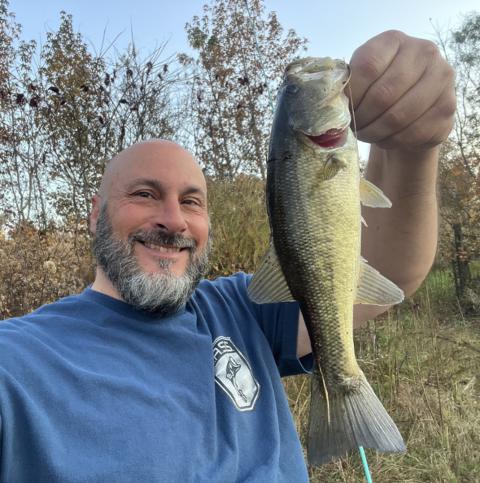 Caught this LMB from the shore of a private Tennessee pond using the four-inch Max Scent Creature Hawg (by Berkley).