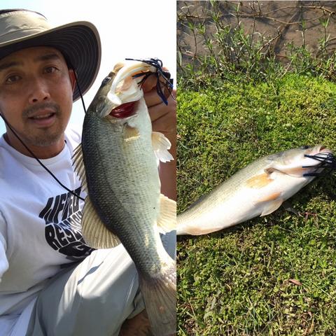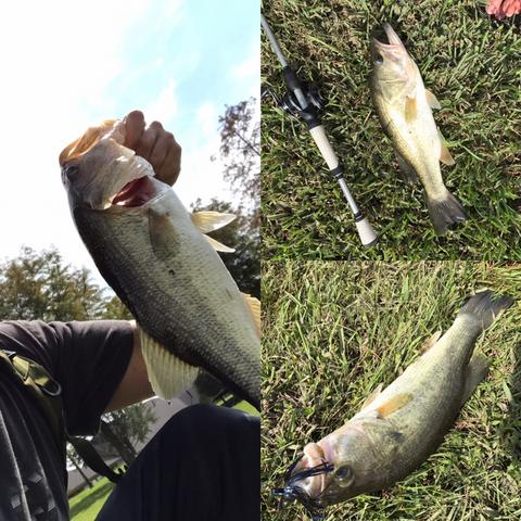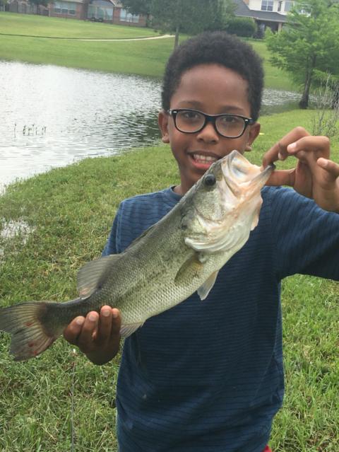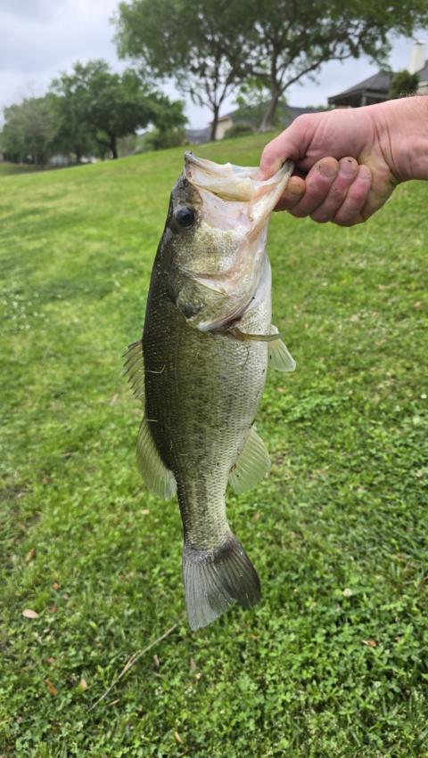 His second bass but his first “real” one lol. Caught on a white spinnerbait with white grub tail. Also caught one later on a black curly tail worm.