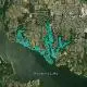 White chatterbait, matched low-action trailer, slow-med retrieve through the sticks. Bit just ahead and left of 'sticks' in photo, near shore and shallow.