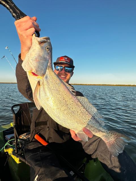 My first time kayaking in the ocean and I caught a massive Speckled Trout! First trout I’ve ever caught and a nice PB!