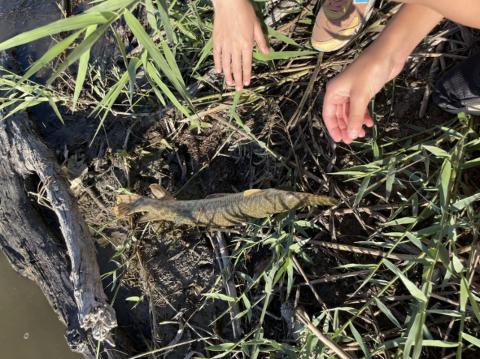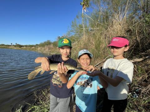 Spotted gar off the bank in the rio grande valley.
