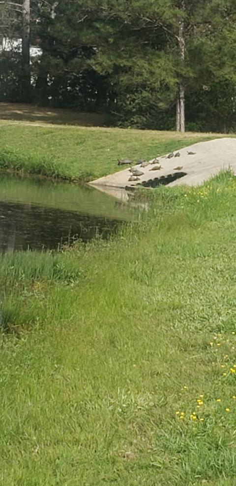 Not sure when I'll be able to go fishing again as when I went to go Thursday night, my car started overheating. Serpentine belt is shredding due to a bad pulley. Womp womp womp. So here is a random pic of a bunch of turtles, that love to chase down my bobbers and eat my bluegills, sunbathing.
