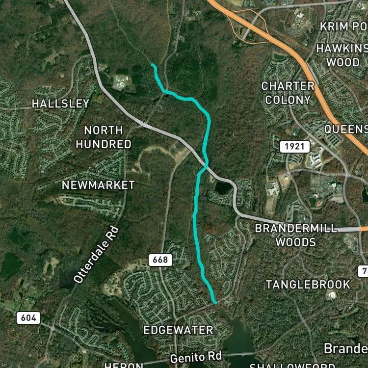Tomahawk Creek is located in 37.467953, -77.683228.